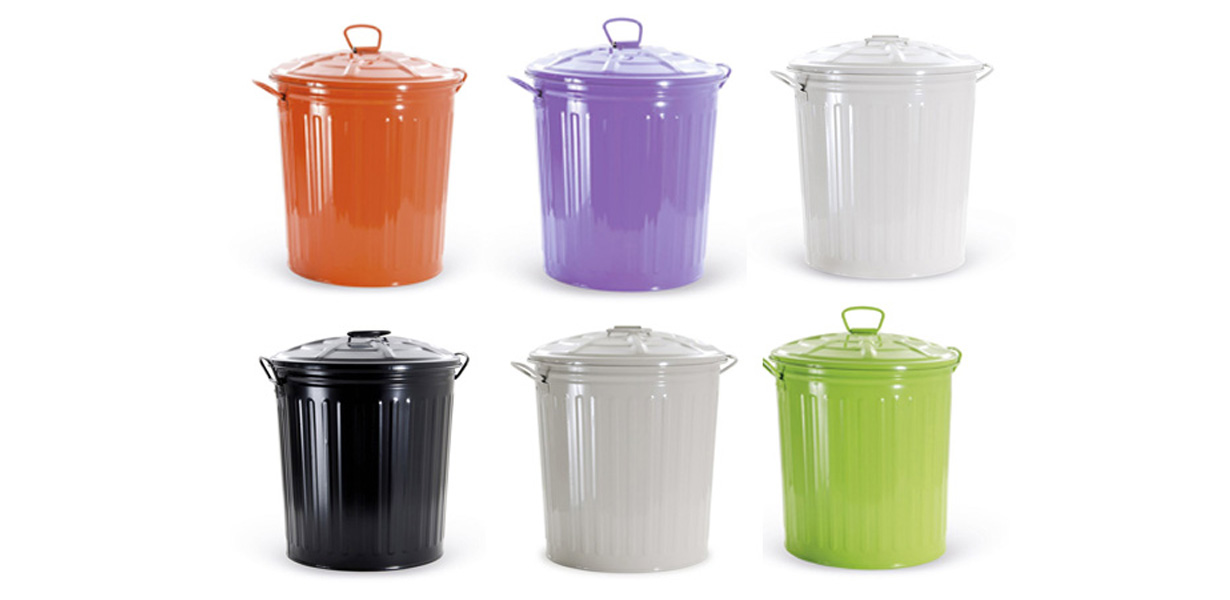 BIDONI IMMONDIZIA COLORATI IN LATTA