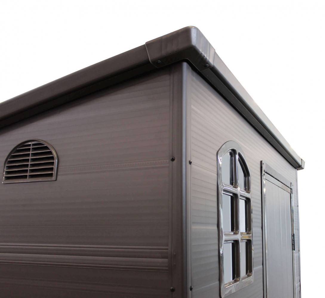 Casetta in plastica con finestra MARRONE o GRIGIO CHIARO Dimensioni: cm 191 x 111 x 194 h