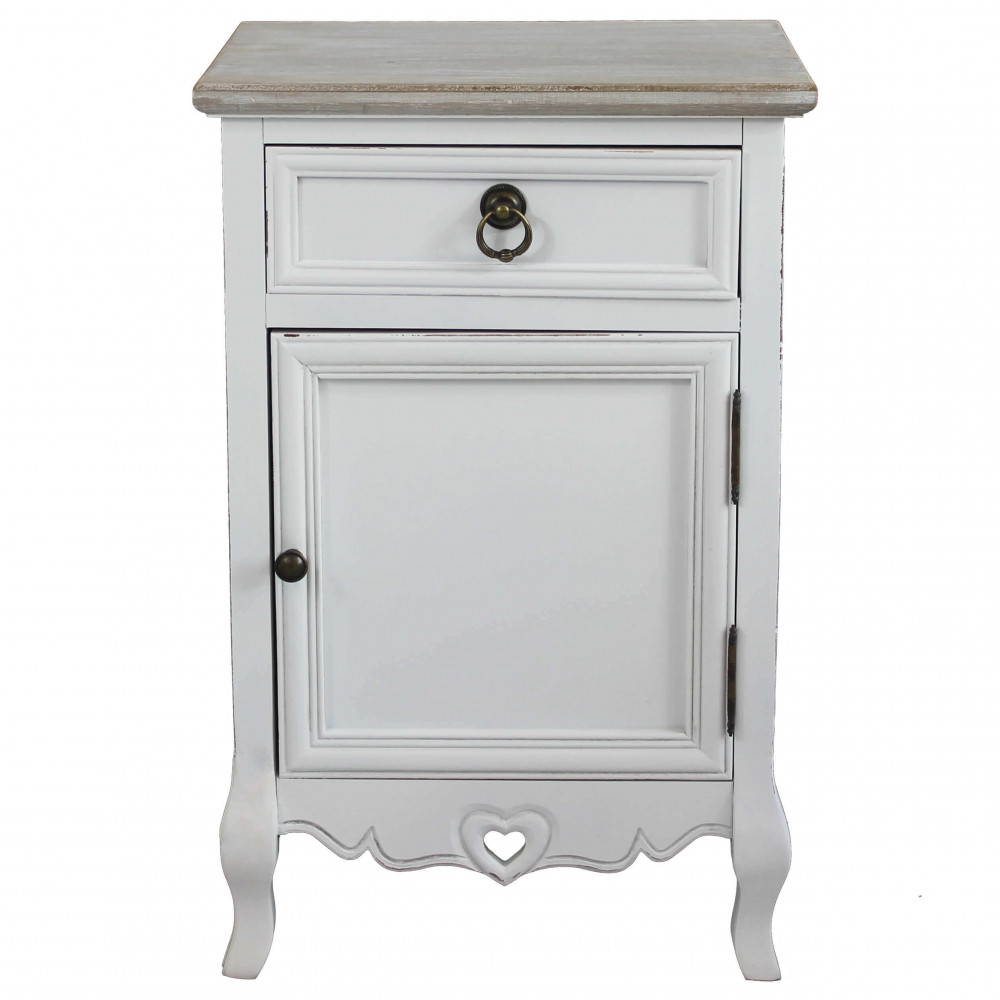 Struttura in legno di paulonia colore BIANCO e top colore NOCCIOLA 1 anta e 1 cassetto Dimensioni: cm 44 x 34 x 68 h