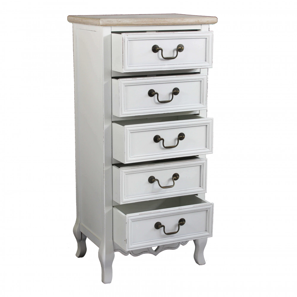 Struttura in legno di paulonia colore BIANCO e top colore NOCCIOLA 5 cassetti Dimensioni: cm 44 x 29 x 91 h