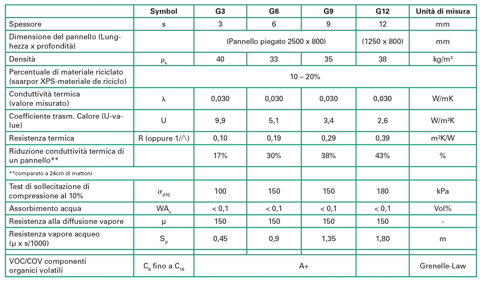 - Conduttività Termica (valore mis.) λ 0,0297; 0,0306; 0,0307 W/mK