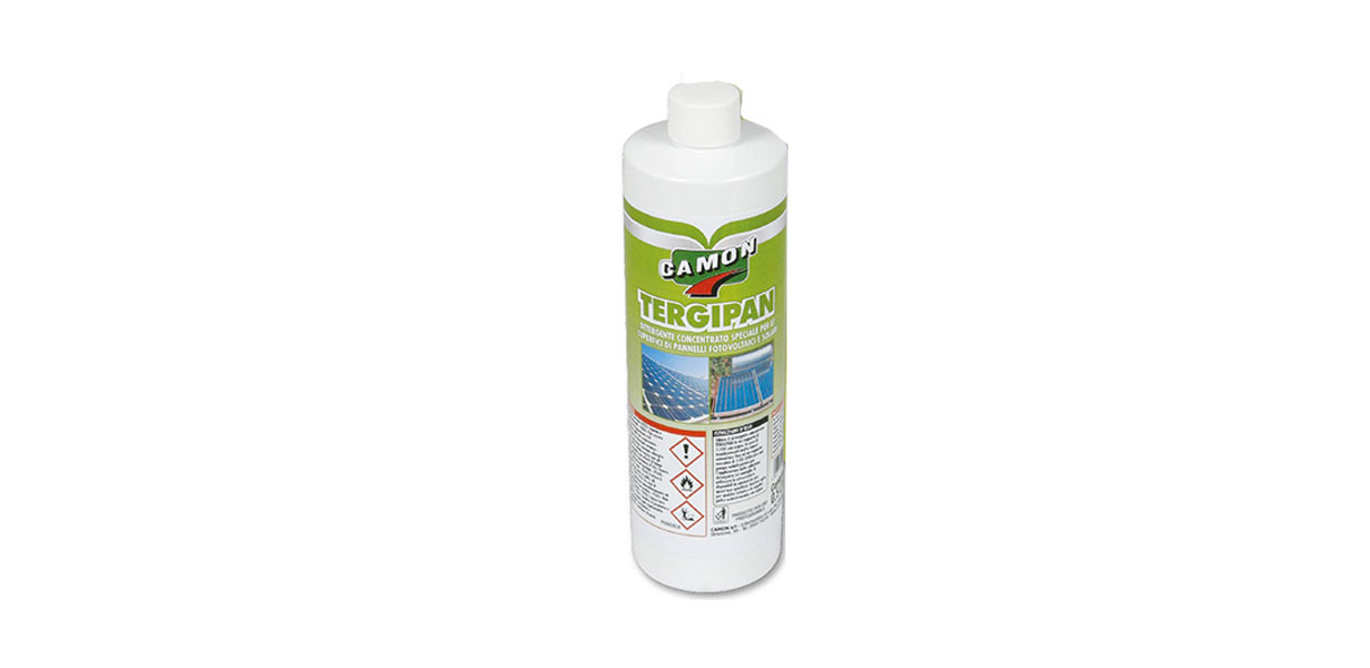Tergipan di Camon è il detergente liquido super concrentrato per la pulizia dei vetri dei pannelli solari e moduli fotovoltaici. Questo prodotto infatti, è concentrato attivo al 100%, sviluppato dunque, per la pulizia del vetro sensibile dei moduli fotovoltaici e pannelli solari termici.