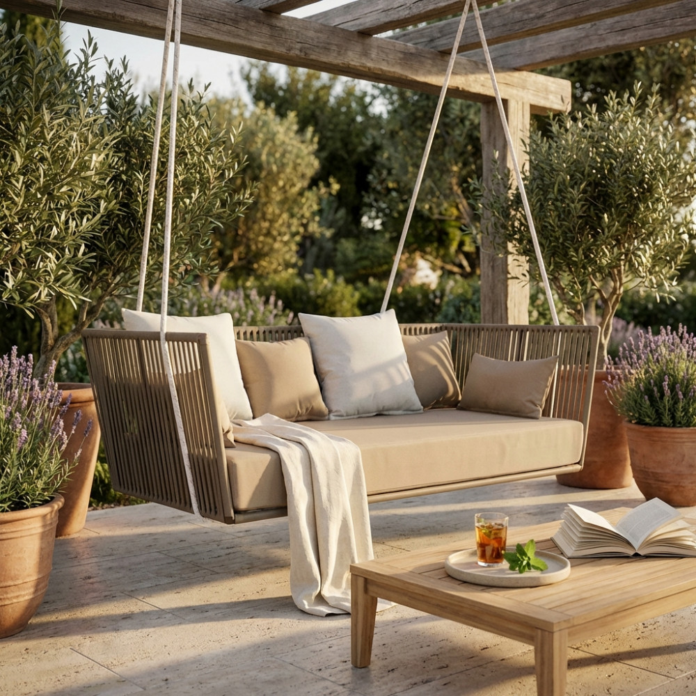 struttura in alluminio verniciato taupe rivestimento in corda in pvc Dimensioni: cm 175 l x 89 p x 158 h