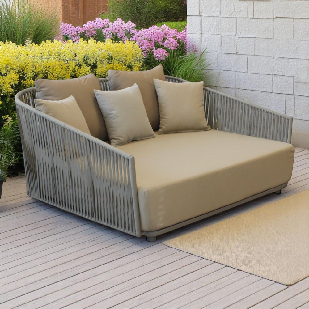struttura in alluminio verniciato taupe rivestimento in corda in pvc Dimensioni: cm 155 l x 75 p x 132 h