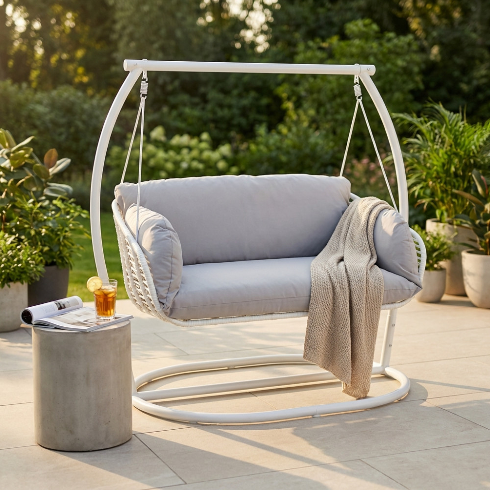 struttura e seduta in metallo bianca o antracite wicker bianco, grigio o naturale Dimensioni: cm 150 l x 160 p x 105 h