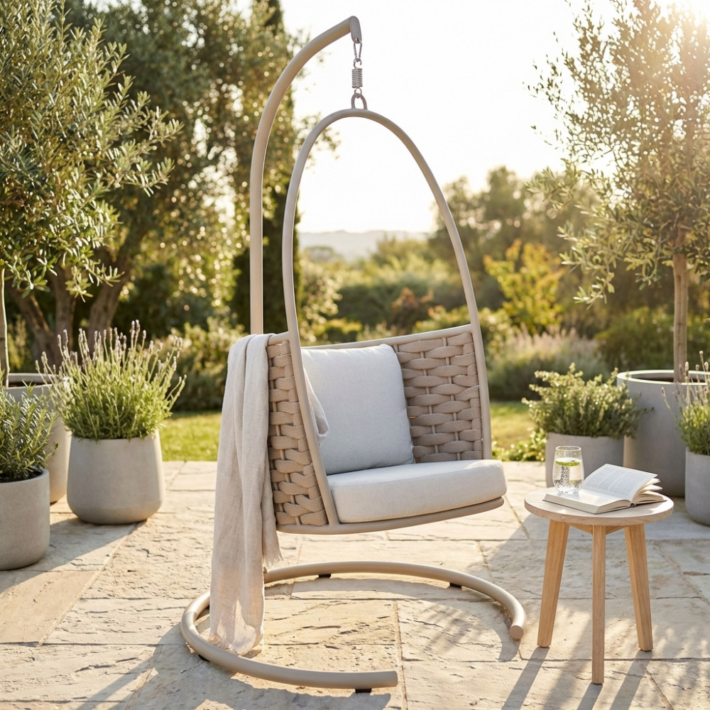 struttura in allumino beige con corda beige cuscini con rivestimento tpu idrorepellente beige Dimensioni: cm 83 l x 79 p x 143 h