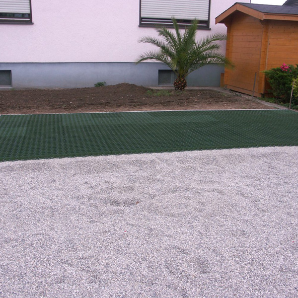 Questo grigliato erboso di Gutta permette al terreno di continuare a respirare e dunque di crescere. Infatti la griglia del prato assicura che gli steli crescano uniformemente e quindi coprano la griglia in modo uniforme solo poche settimane dopo la posa. Questo materiale a nido d’ape inoltre se posato su tutta l’area e offre quindi un’elevata capacità di carico statico
