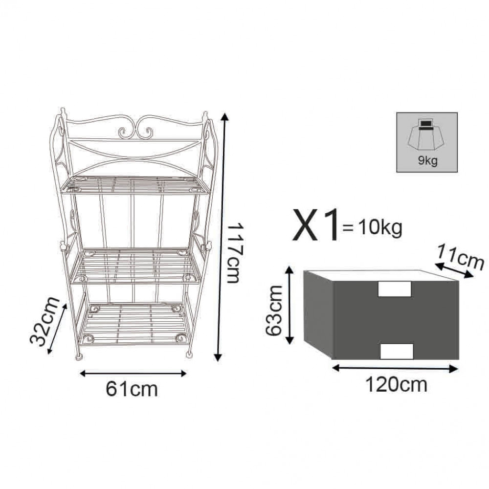 Étagère in metallo 3 piani verniciato a polvere color BIANCO trattamento elettroforesi Dimensioni: cm 61 x 32 x 117 h