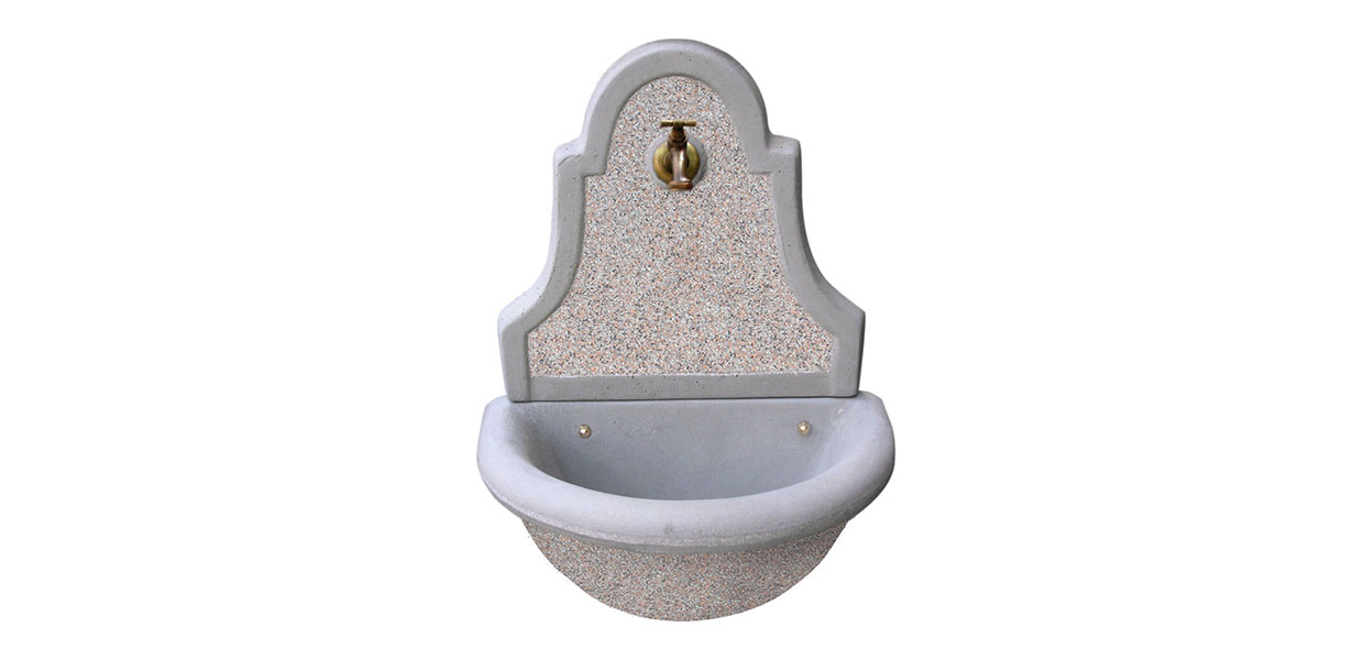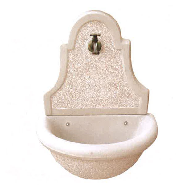 Inoltre la fontana- bacinella in cemento a parete da giardino viene fornita senza la rubinetteria.