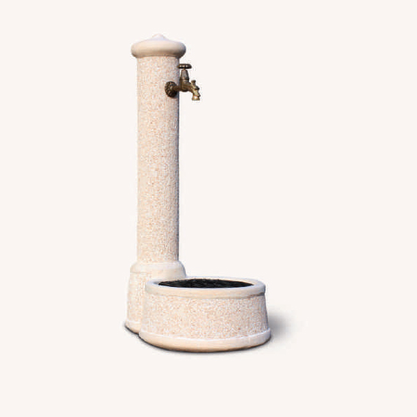 Inoltre la fontana ha al suo interno della colonna un tubo da 1/2″ per il collegamento alla rete idrica, ma viene fornita con griglia ma senza la rubinetteria.