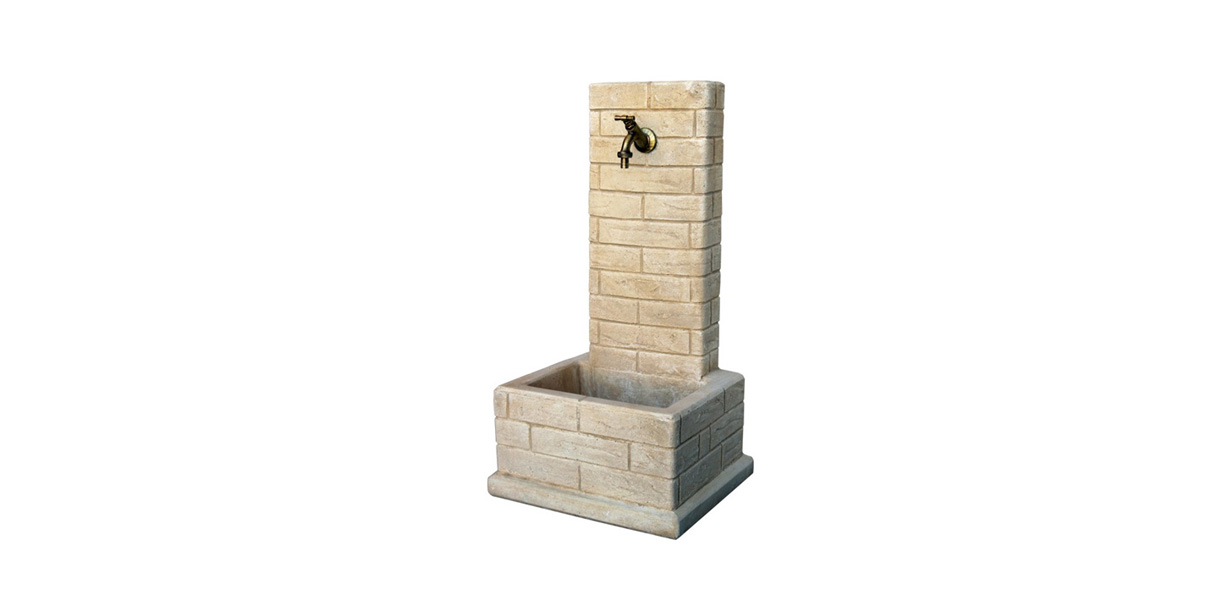Fontana squadrata effetto mattone in calcestruzzo. Disponibile nelle finiture anticato nocciola.