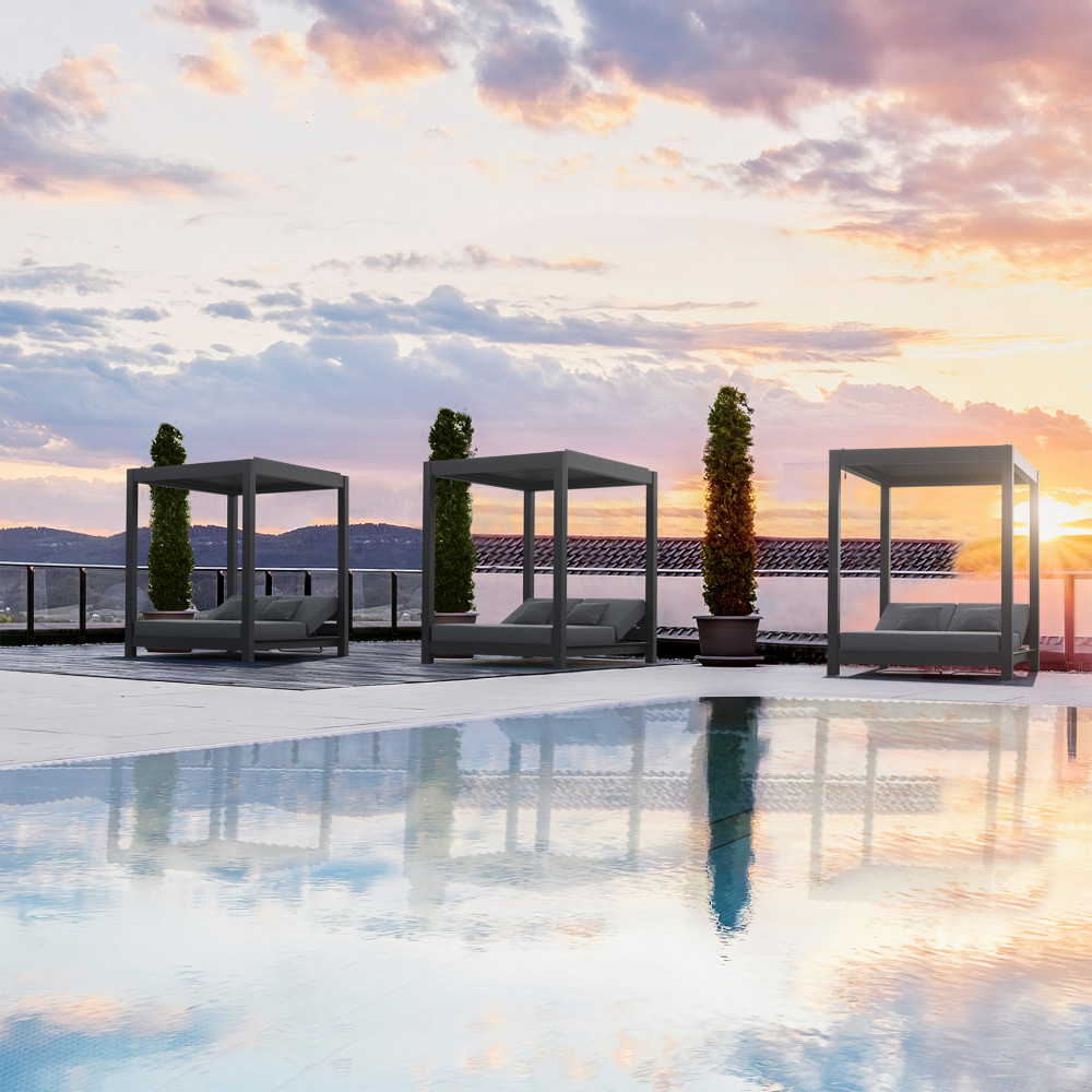 struttura in alluminio antracite tettuccio apri e chiudi Dimensioni: cm 180 l x 205 p x 200 h