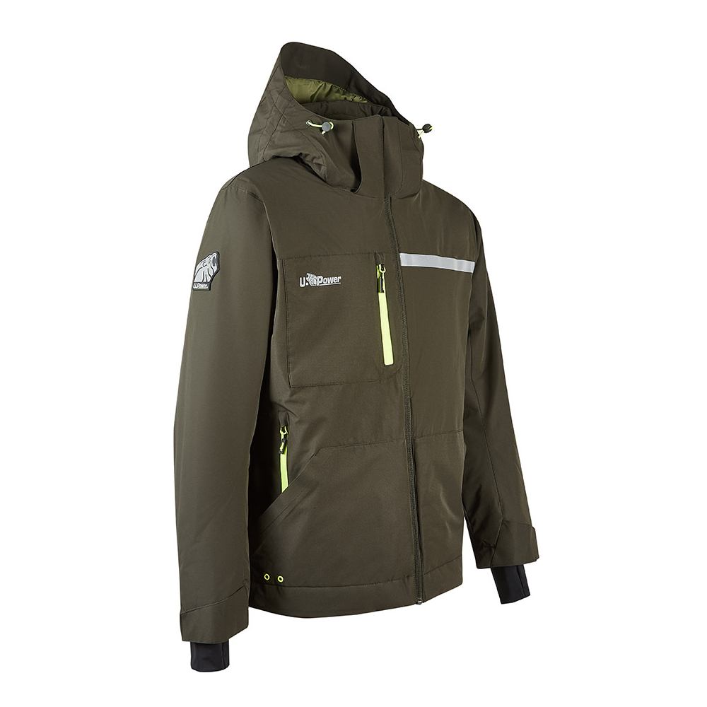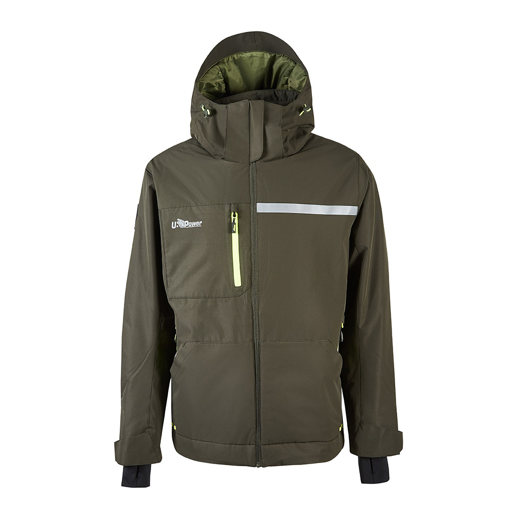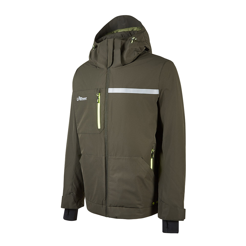 Innovativa giacca da lavoro invernale con imbottitura in grafene, leggera e resistente. Il tessuto grafene consente una distribuzione omogenea del calore assicurando comfort e benessere in qualunque condizione climatica. Giacca con cappuccio fisso regolabile con coulisse elasticizzata e zip centrale. Giacca idrorepellente con collo interno in morbido microfleece e fondo dritto regolabile con coulisse interna. I polsini sono dotati di velcro e polsino antivento interno con foro passa-pollice. Giacca multitasche, comoda e funzionale. La parte frontale è dotata di due tasche scalda mani con fori di drenaggio più due tasche verticali e un’ulteriore tasca verticale sul petto, tutte con chiusura zip. Alle tasche frontali se ne aggiungono due interne molto ampie, di cui una con cerniera. Il design di questa giacca tecnica da lavoro è arricchito dalla presenza di una banda reflex sul petto lato sinistro e sul cappuccio, nelle varianti Asphalt Grey e Dark Green, mentre nella variante Black Carbon le bande hanno un effetto carbonio. Stampa logo reflective “U-Power” sul lato destro del petto e stampa “U-Supremacy” sulla schiena. Apertura interna posteriore per permettere la personalizzazione della giacca da lavoro e agevolare stampe e ricami.
