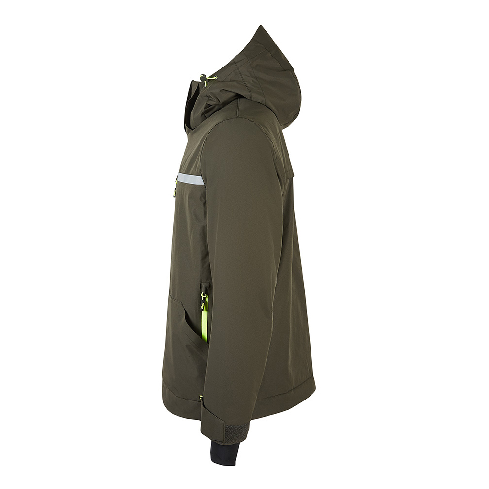 Dunque, si tratta di un capo di abbigliamento con cappuccio fisso regolabile con coulisse elasticizzata e zip centrale. Mentre il tessuto esterno della giacca invernale è idrorepellente con collo interno in morbido microfleece e fondo dritto regolabile con coulisse interna. Così come i polsini sono dotati di velcro e polsino antivento interno con foro passa-pollice.