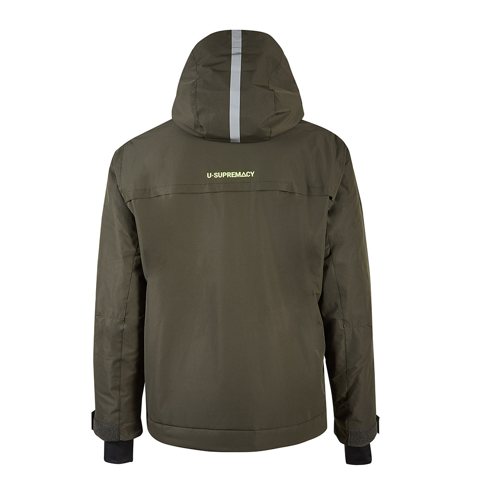 In aggiunta, alle tasche frontali se ne aggiungono due interne molto ampie, di cui una con cerniera. Inoltre, il design di questa giacca è arricchito dalla presenza di una banda reflex sul petto lato sinistro e sul cappuccio, mentre l’immancabile logo reflective “U-Power” è posizionato sul lato destro del petto e la stampa “U-Supremacy” sulla schiena.