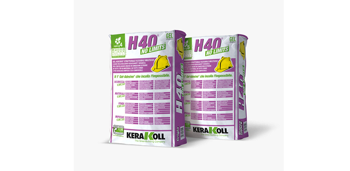 H40 No Limits di Kerakoll è un gel-adesivo® strutturale flessibile multiuso, ovvero una colla per piastrelle e per pavimenti. Si tratta dunque di un prodotto professionale a base dell’esclusivo Geolegante® Kerakoll. Questo Geolegante® Kerakoll infatti permette l’incollaggio anche in condizioni estreme di tutti i tipi di materiali, su tutti i fondi e per qualsiasi impiego.