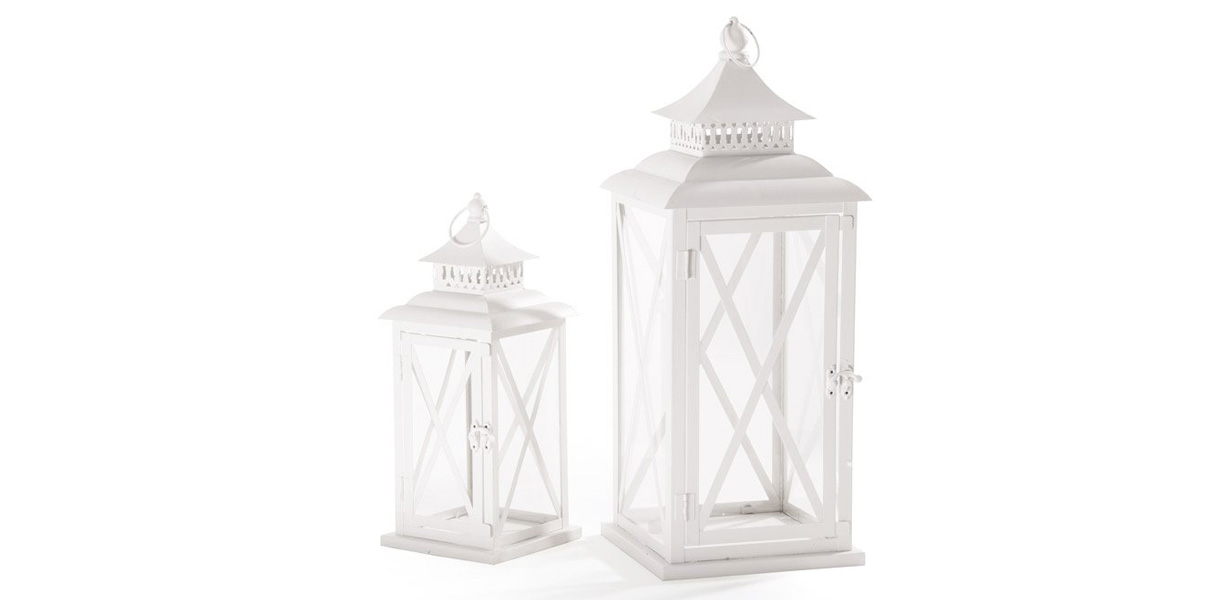 Set 2 di lanterne per esterno, lanterna in metallo con vetri laterali. Si tratta di un set composto da una lanterna media e  una grande. Questo duo di lanterne da design  decisamente classico e tipico delle lanterne (shabby), si presentano come ideali complementi di arredo per diverse tipologie di ambienti. Soprattutto per l’arredo giardino e ed esterno.