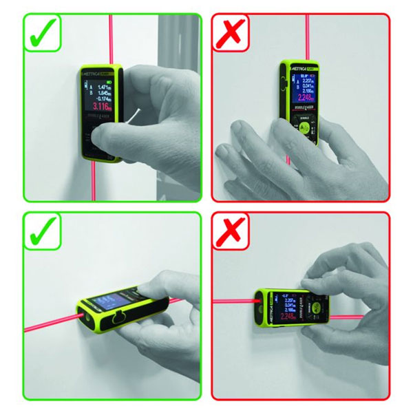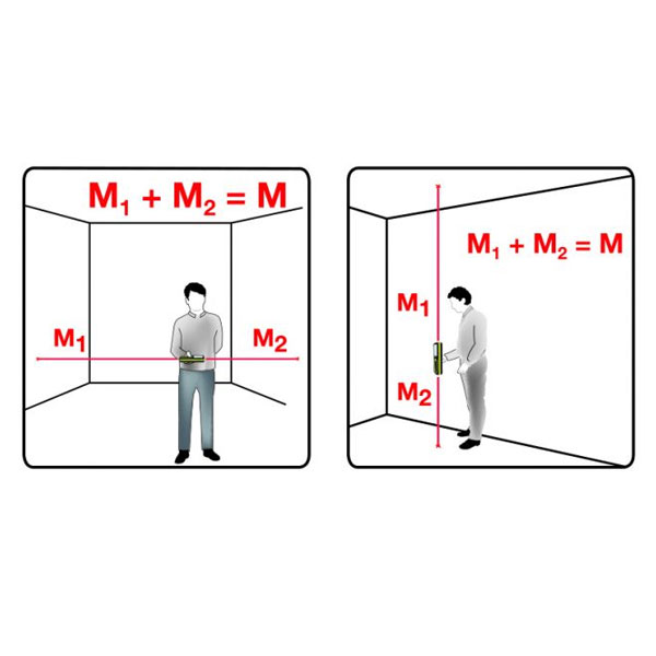 In aggiunta, questo strumento di misurazione laser di Metrica è dotato di funzione di misurazione continua con MAX e MIN, così come le 2 funzioni Pitagora e la funzioni di somma e sottrazione.