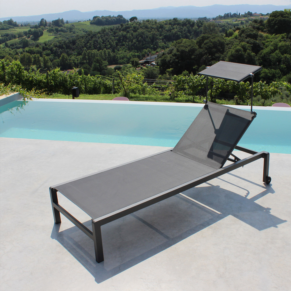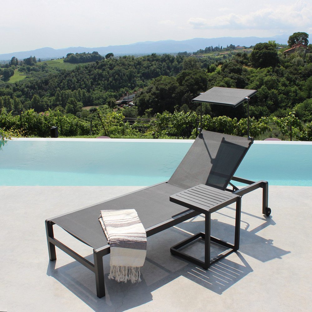 Struttura in alluminio verniciato BIANCO o ANTRACITE o TAUPE textilene 2 x 1 con tettuccio Dimensioni: cm 195 x 78 x 32/54 h