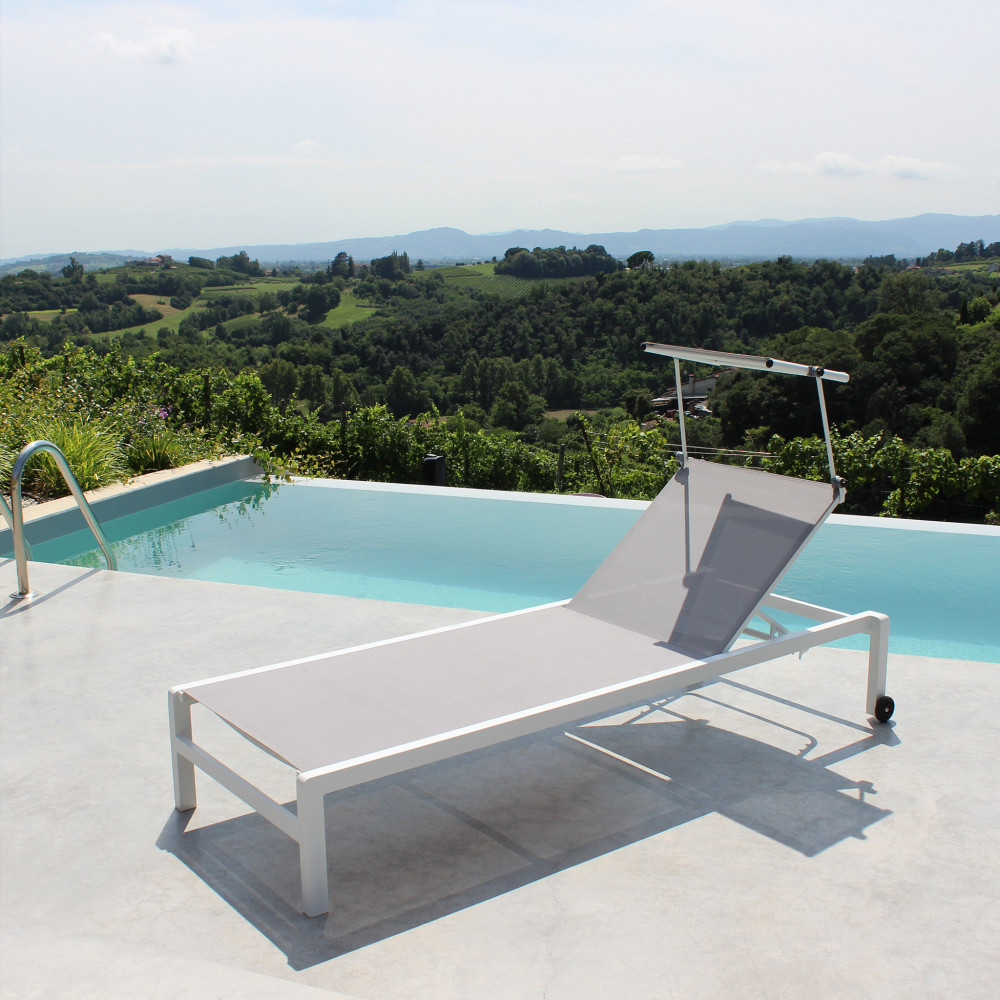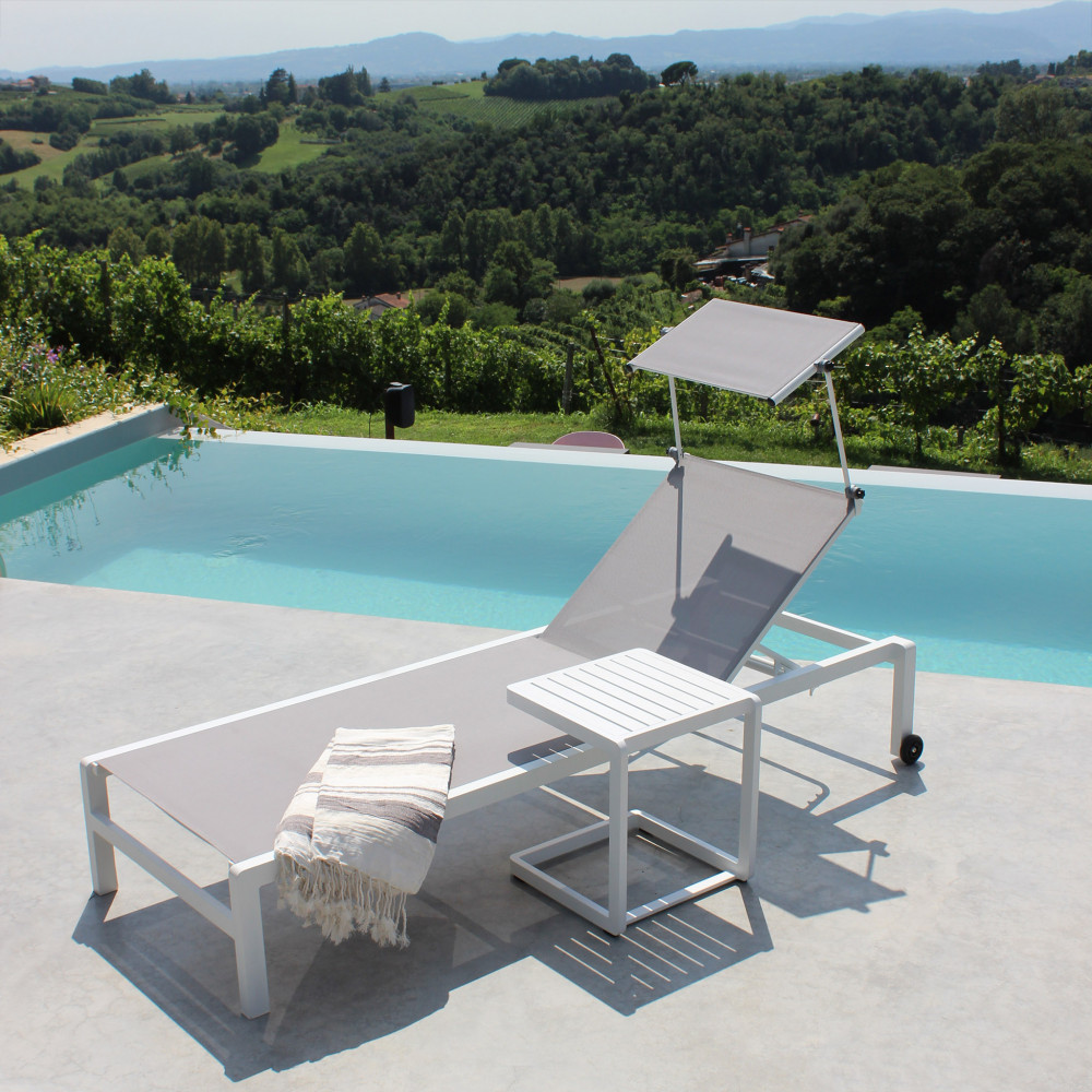 Struttura in alluminio verniciato BIANCO o ANTRACITE o TAUPE textilene 2 x 1 con tettuccio Dimensioni: cm 195 x 78 x 32/54 h