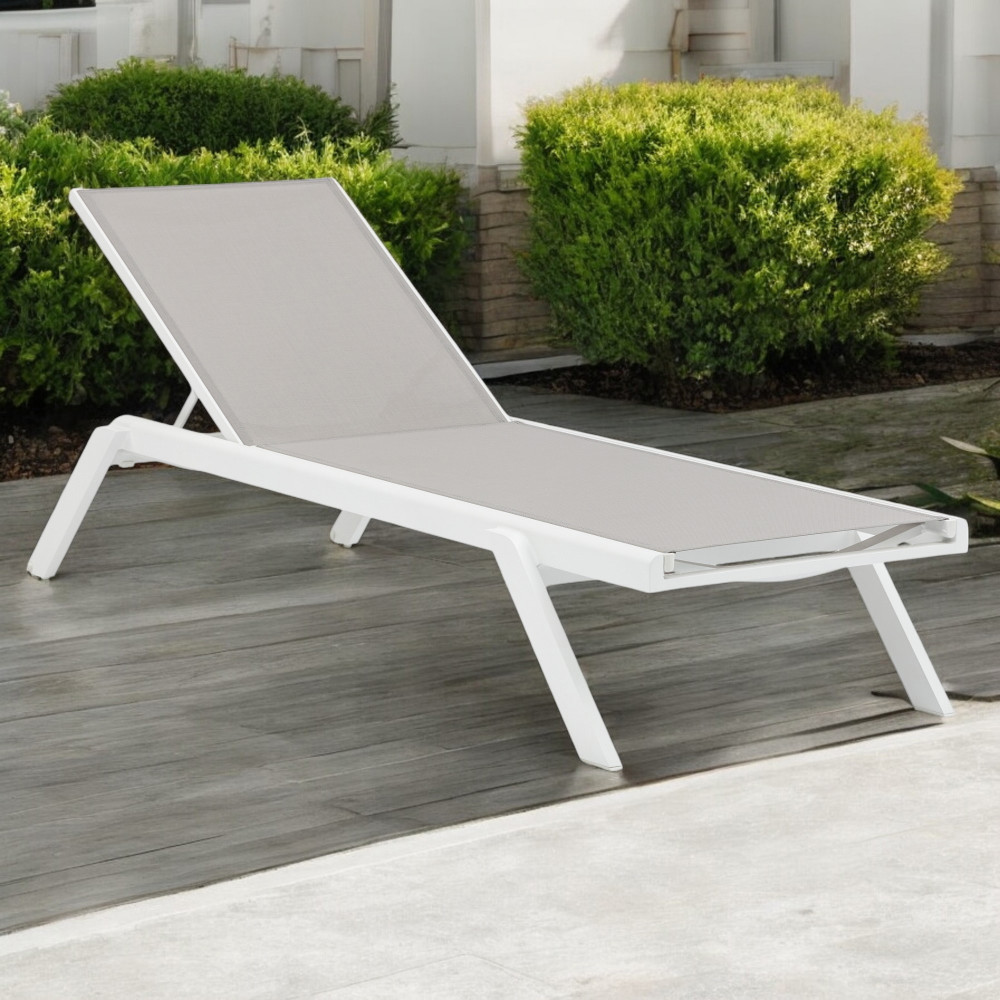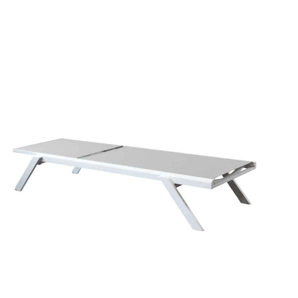 struttura in alluminio verniciato bianco o antracite textilene bianco, grigio chiaro o antracite su antracite Dimensioni: cm 198 l x 72 p x 35,5 h