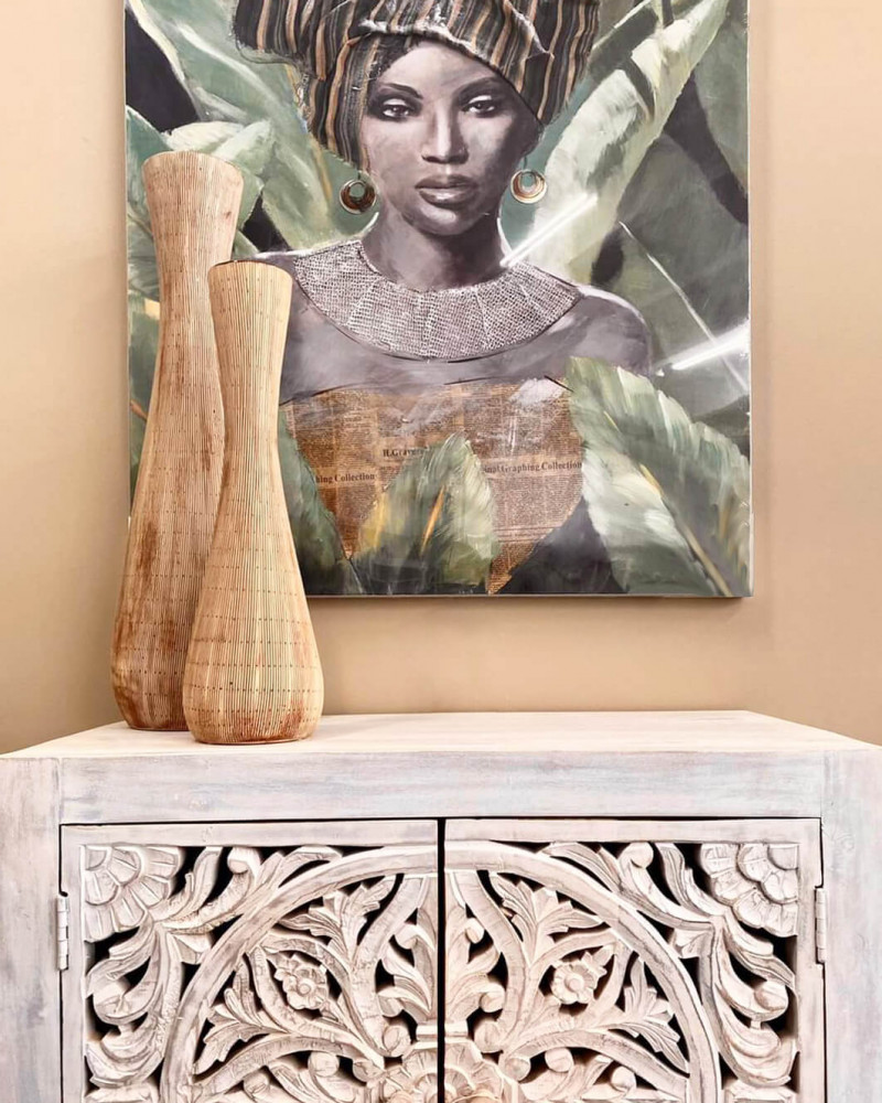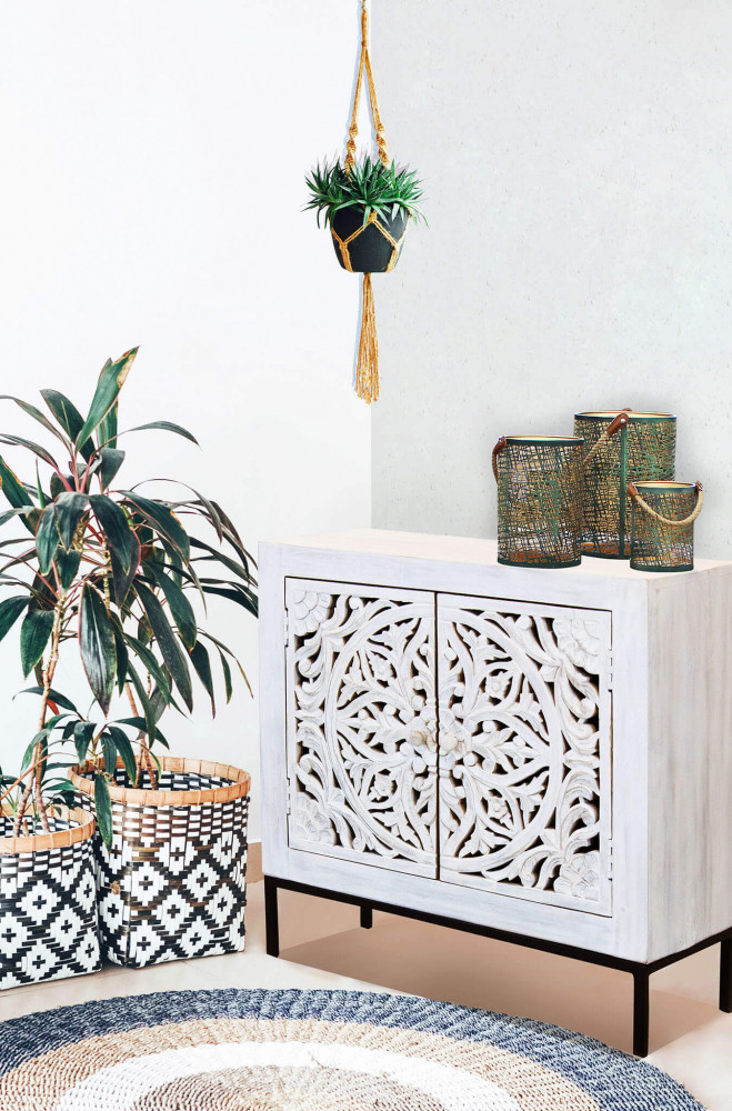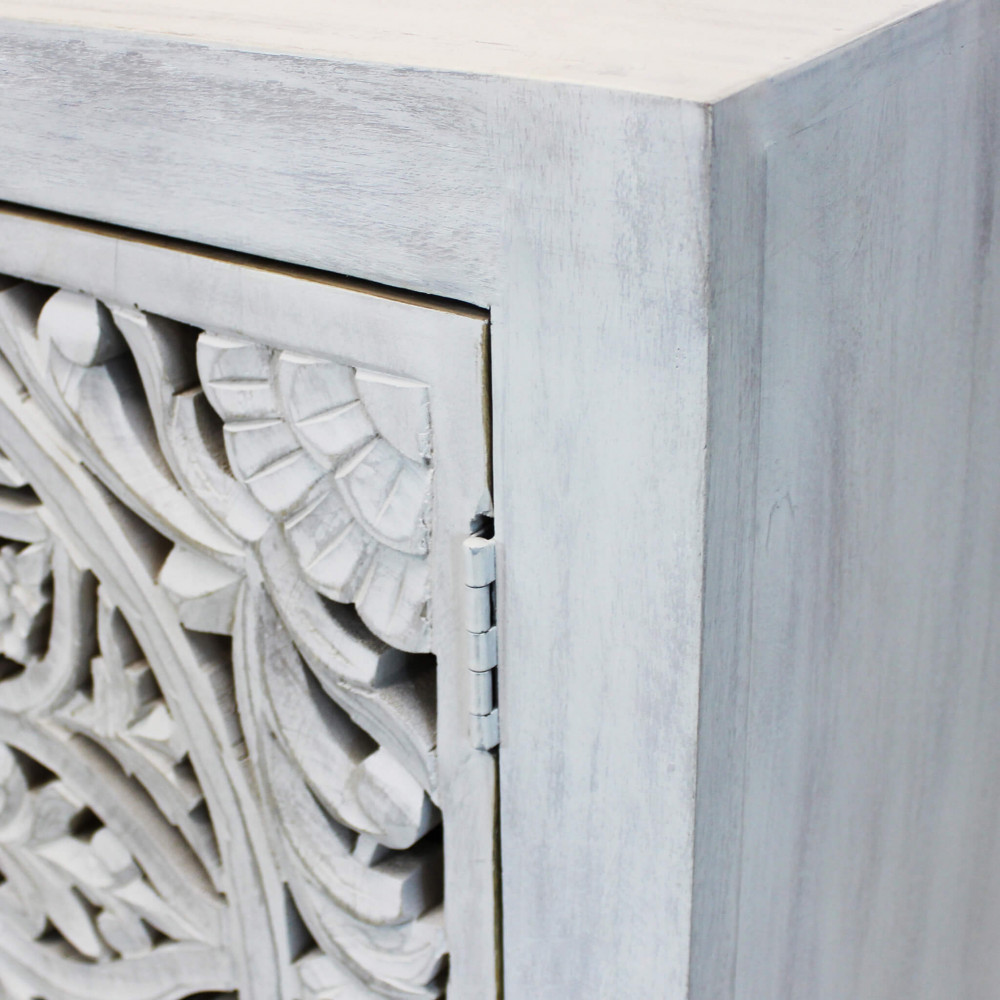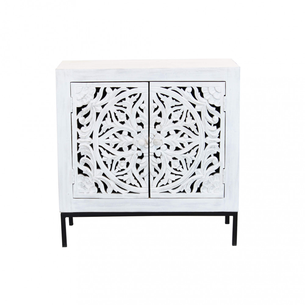 Mobile con decoro sbiancato con 2 ante in legno di mango con struttura in ferro Dimensioni: cm 80 x 40 x 80 h