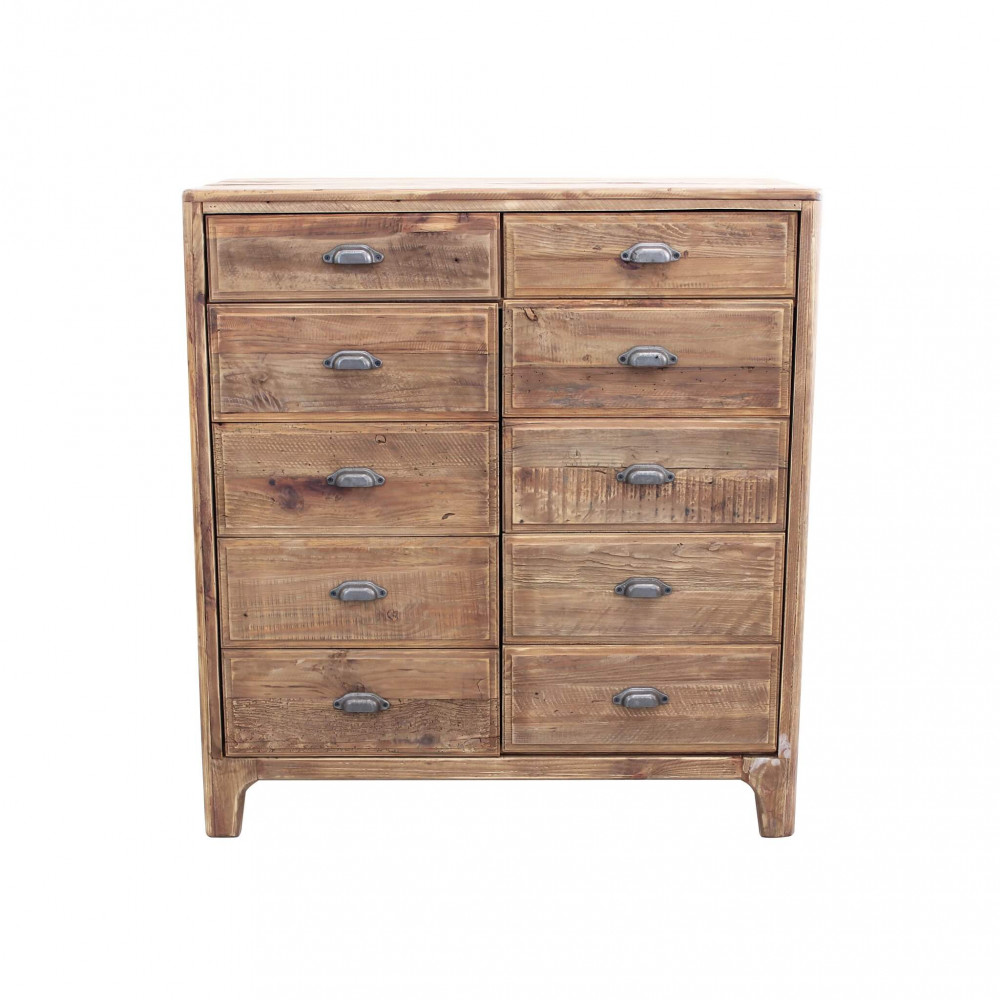 Mobile con 10 cassetti in legno di pino riciclato Dimensioni: cm 105 x 48 x 113 h