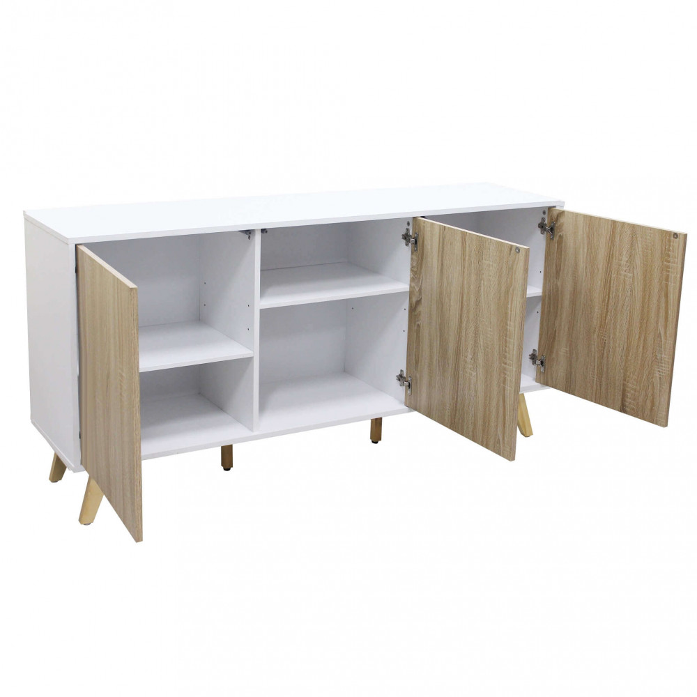 Mobile in melammina con 3 ante naturali, struttura bianca o grigio scura Dimensioni: 150 x 39,5 x 75 h