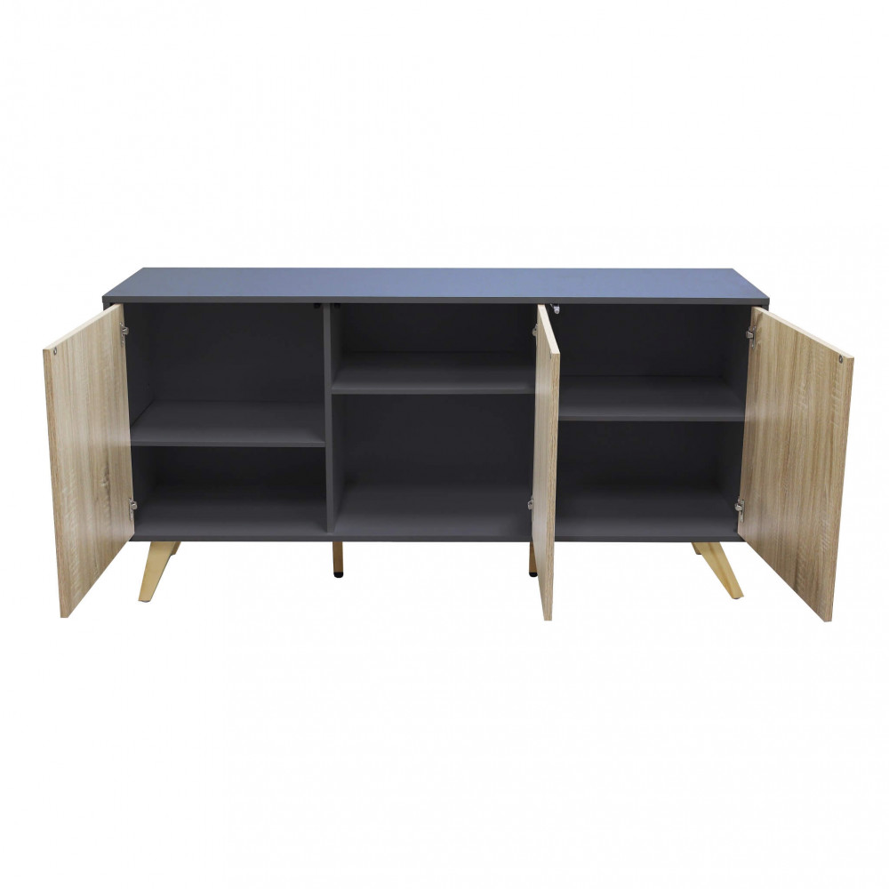 Mobile in melammina con 3 ante naturali, struttura bianca o grigio scura Dimensioni: 150 x 39,5 x 75 h