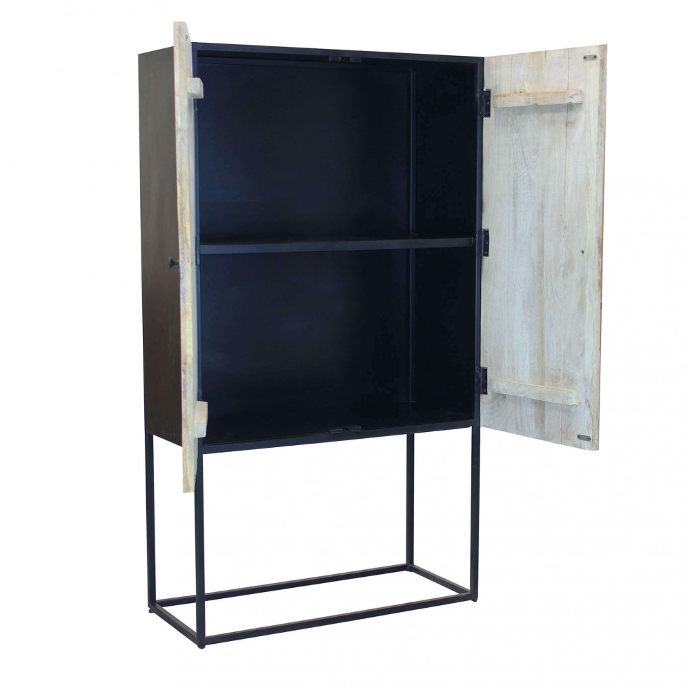 Mobile con decoro naturale con 4 ante in legno di mango con struttura in ferro Dimensioni: cm 90 x 40 x 160 h