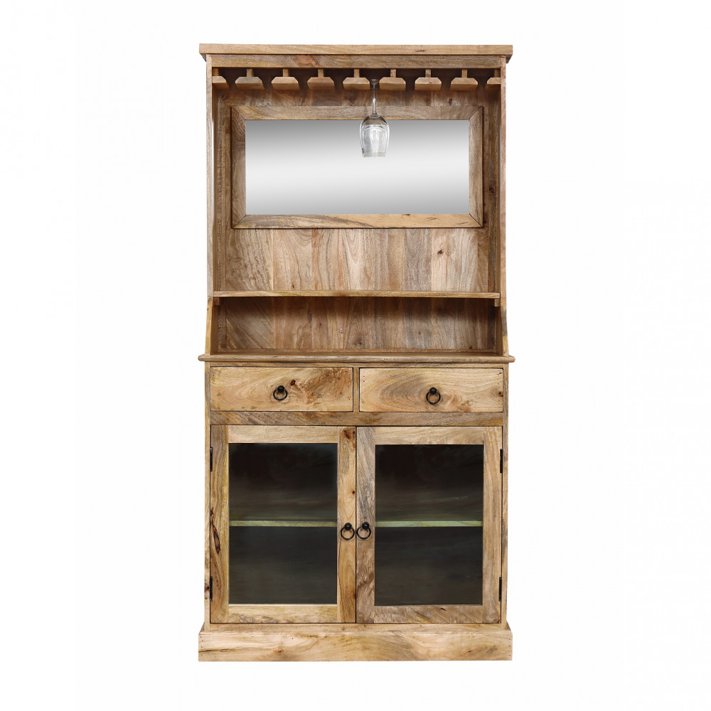 mobile in legno di mango con 2 ante, 2 cassetti e con porta bottiglie e bicchieri Dimensioni: cm 90 l x 45 p x 178 h