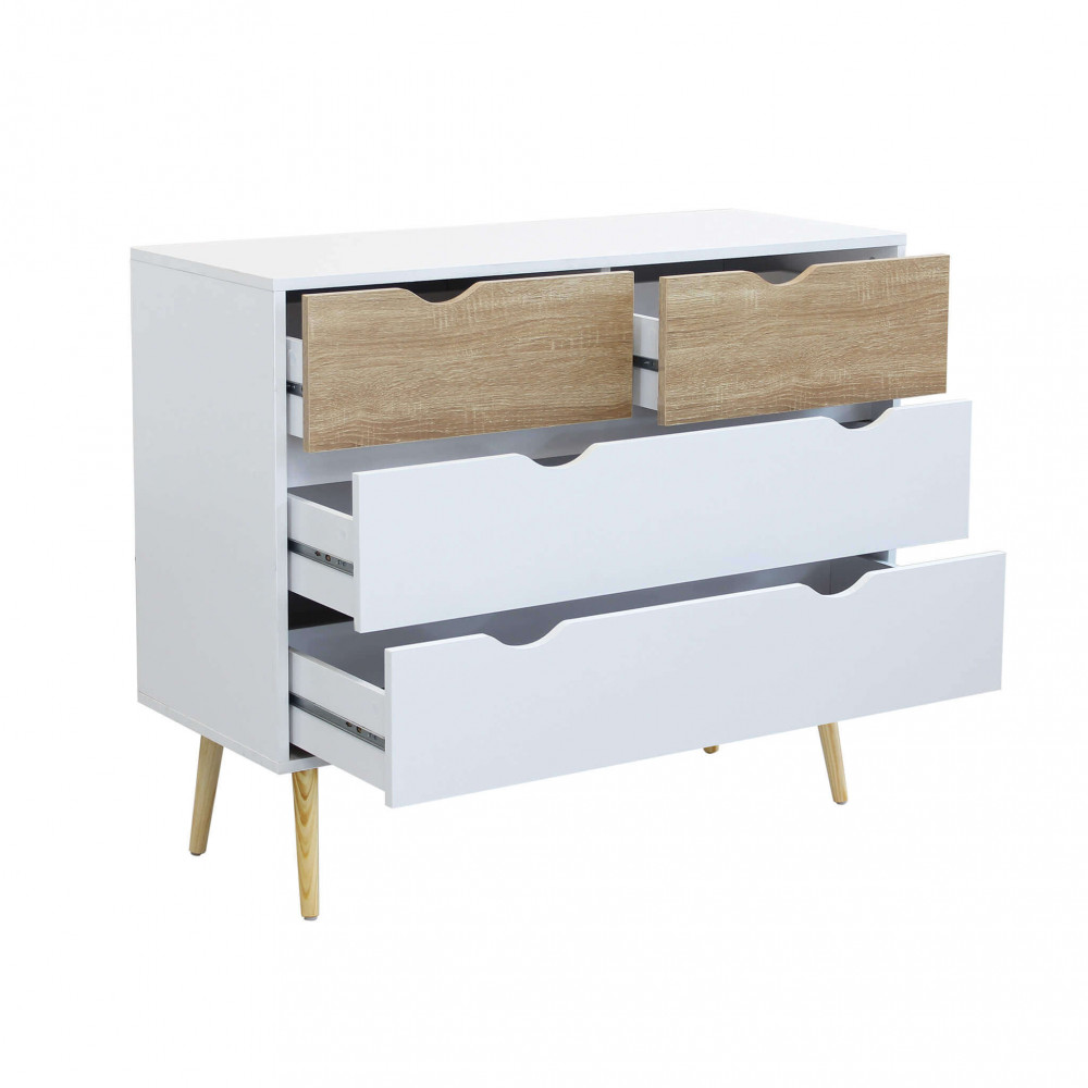 Mobile con 4 cassetti in legno bianco e naturale Dimensioni: cm 99 x 39 x 82 h