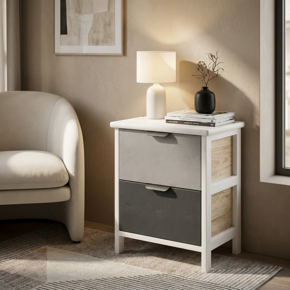 mobiletto in legno con 2 cassetti Dimensioni: cm 34 l x 25 p x 43,5 h
