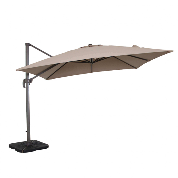 Ombrellone giardino in metallo alluminio di alta qualità, modello Crono (ombrelloni da giardino o da esterno) 3×3 e 3×4 . Ottimo ombrellone e complemento di arredo giardino dalla forma quadrata e/o rettangolari con le rispettive dimensioni di 3×3 m e/o 3×4 m. Per entrambe le dimensioni, la struttura di questo ombrellone è composta con 8 stecche in alluminio 14×24 mm. Inoltre la copertura è stata pensata in poliestere 250 gr con antivento. E’ composto da diversi elementi, come copertura e stecche e palo. Il palo orientabile a 360° girevole è anch’esso in alluminio53x77 e 25×40 mm.