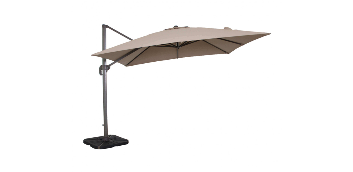 Inoltre, questo modello di ombrellone in alluminio a braccio è disponibile on line nella tonalità sobria e elegante del tortora e taupe, ovvero struttura taupe e telo antivento tortora, oppure nelle tonalità del bianco e tortora (telo tortora, palo bianco), ma anche nella nuova tonalità del grigio (telo grigio, palo antracite).