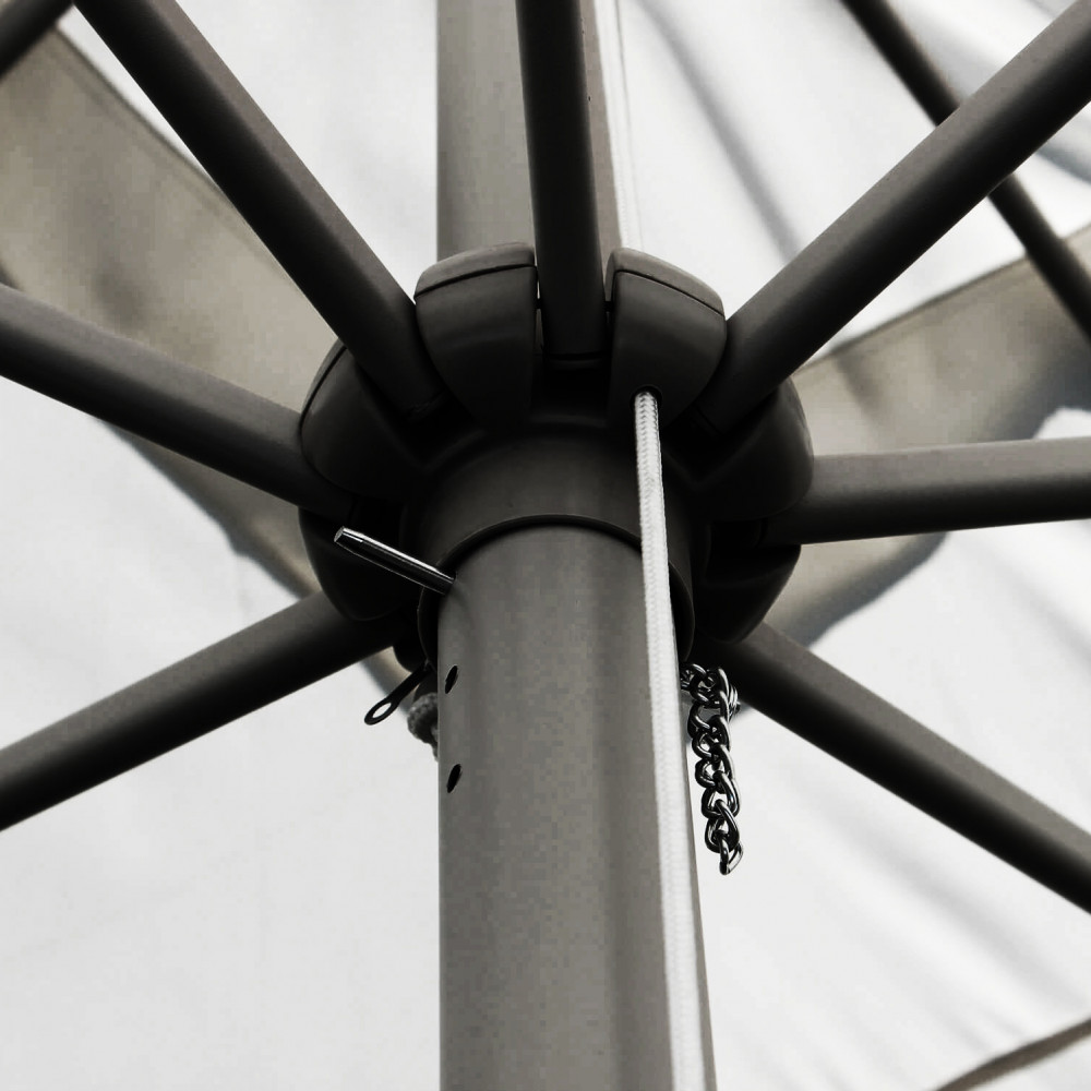 Telo in poliestere GRIGIO 200 gr palo NERO in alluminio 69 x 53 x 1,5 mm, orientabile 360° C/CARRUCOLA 8 stecche metallo 12 x 23 x 1 mm Dimensioni: m 3 x 3