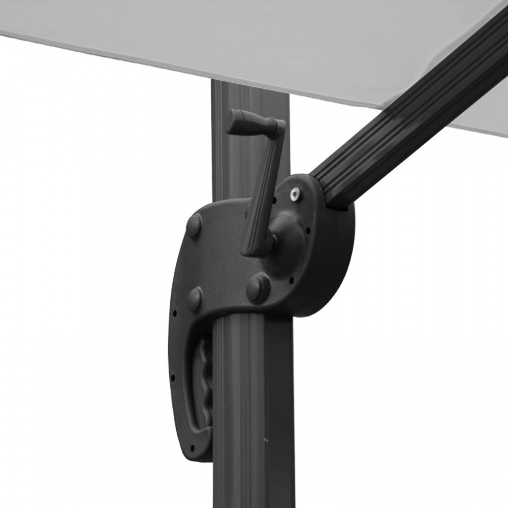 Telo in poliestere GRIGIO CHIARO 250 gr con antivento palo girevole in alluminio 95×65 e 48×55 mm 8 stecche alluminio 17 x 25 mm, base a crociera Dimensioni: m 3 x 4