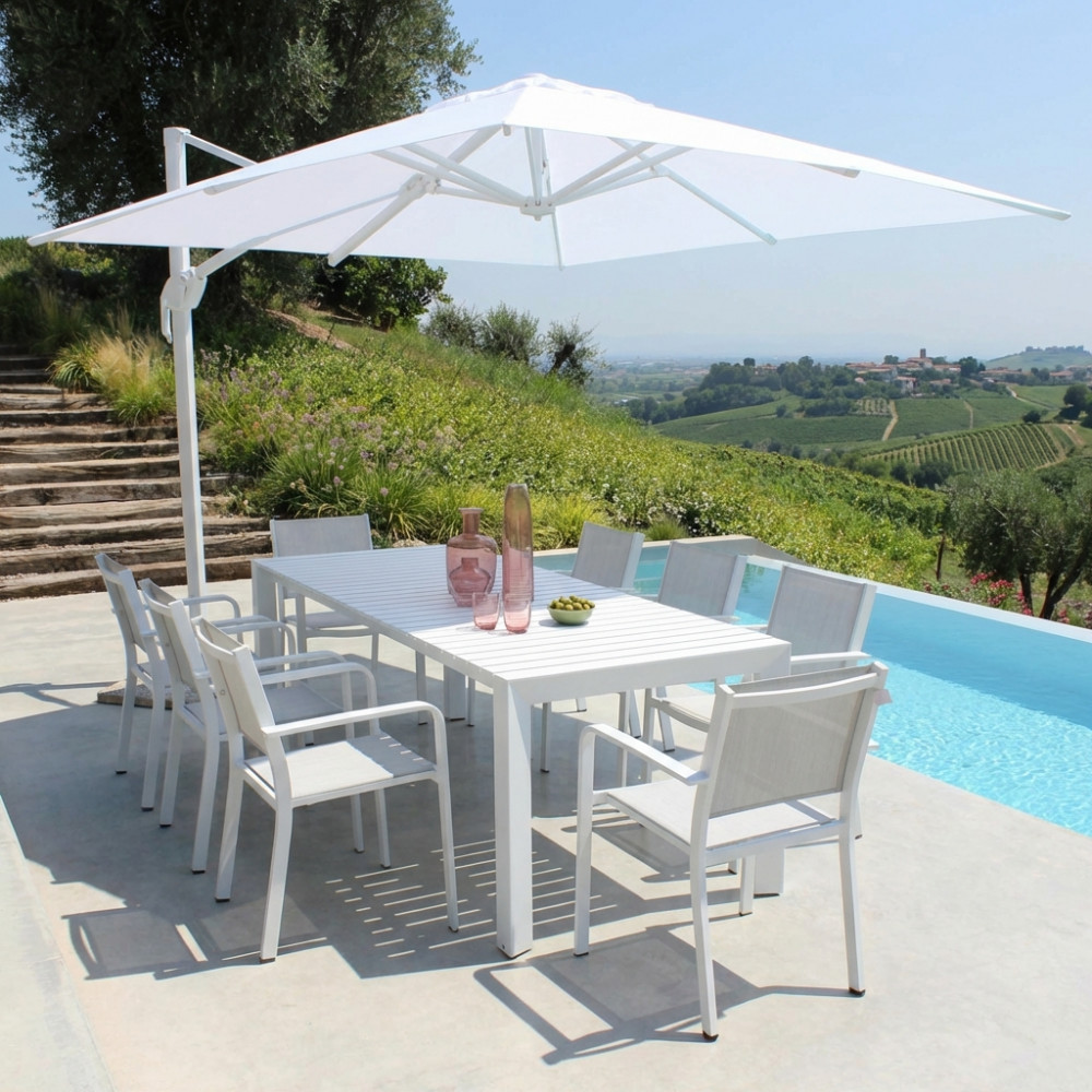 telo in poliestere bianco 250 gr con antivento palo girevole in alluminio 62×102 e 38×52 mm Dimensioni: cm 300 l x 400 p x 273 h