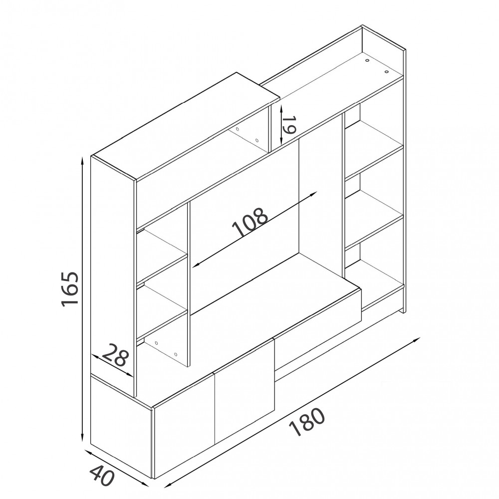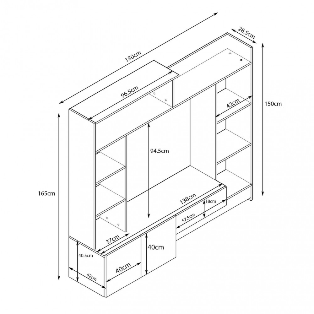 Dimensioni: cm 180 x 28/40 x 165 h