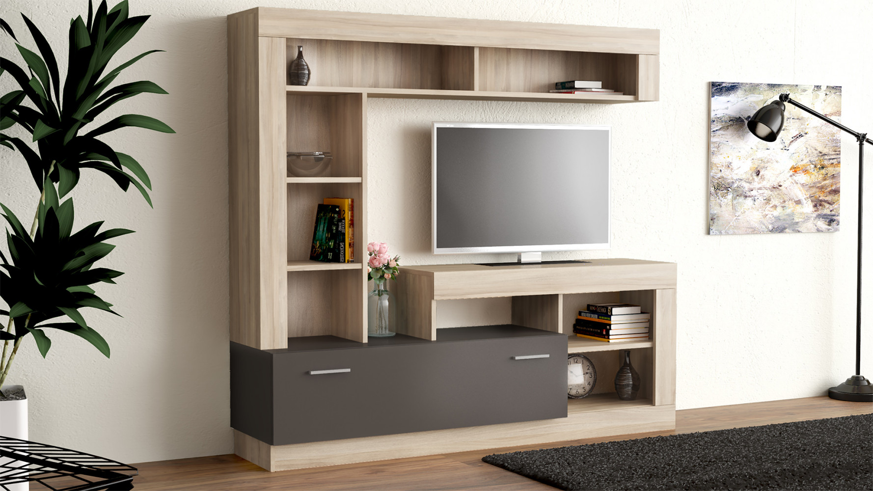 PARETE SOGGIORNO LEONARD OLMO E GRIGIO