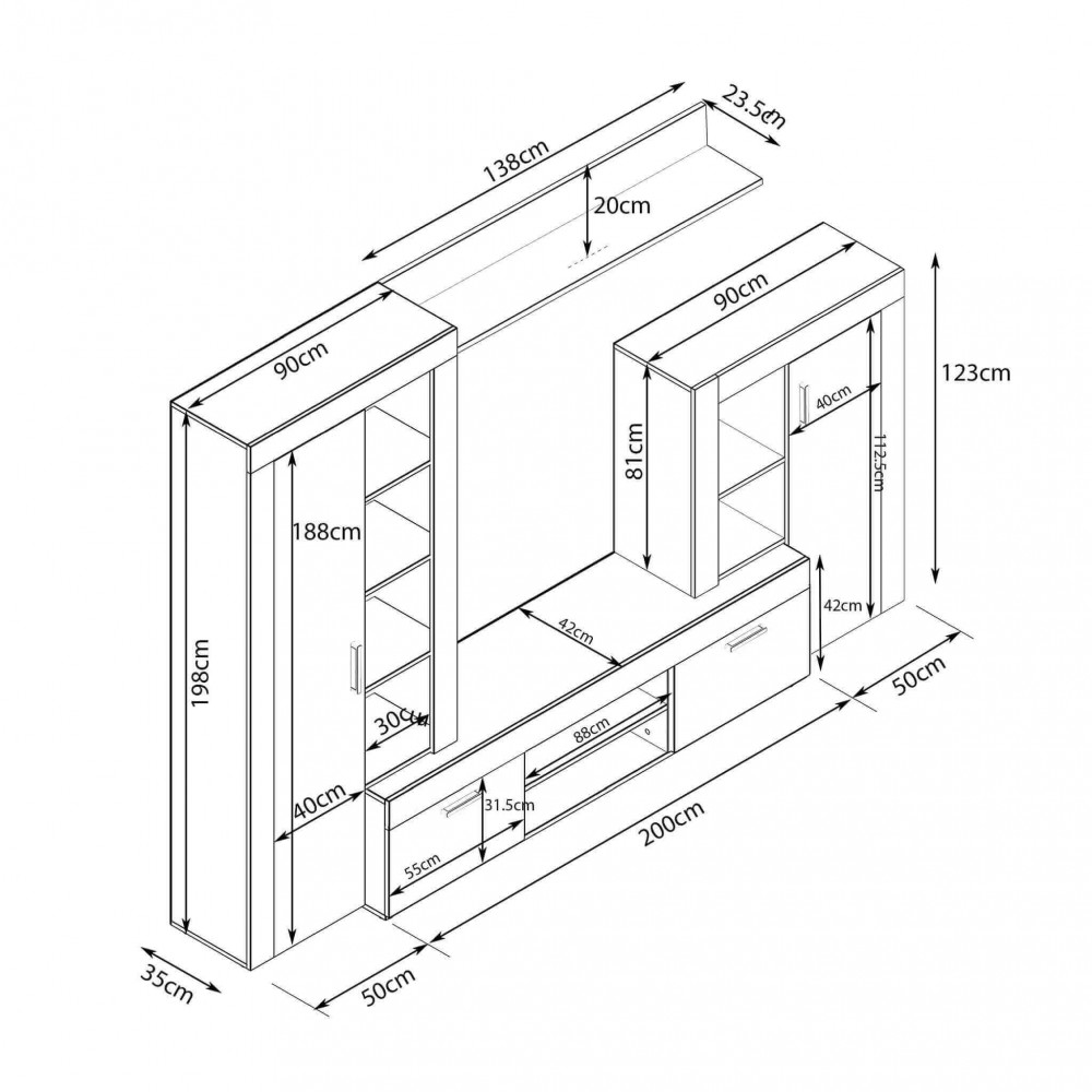 Parete in legno ANTRACITE e QUERCIA CHIARO Dimensioni: cm 263 x 40 x 200 h