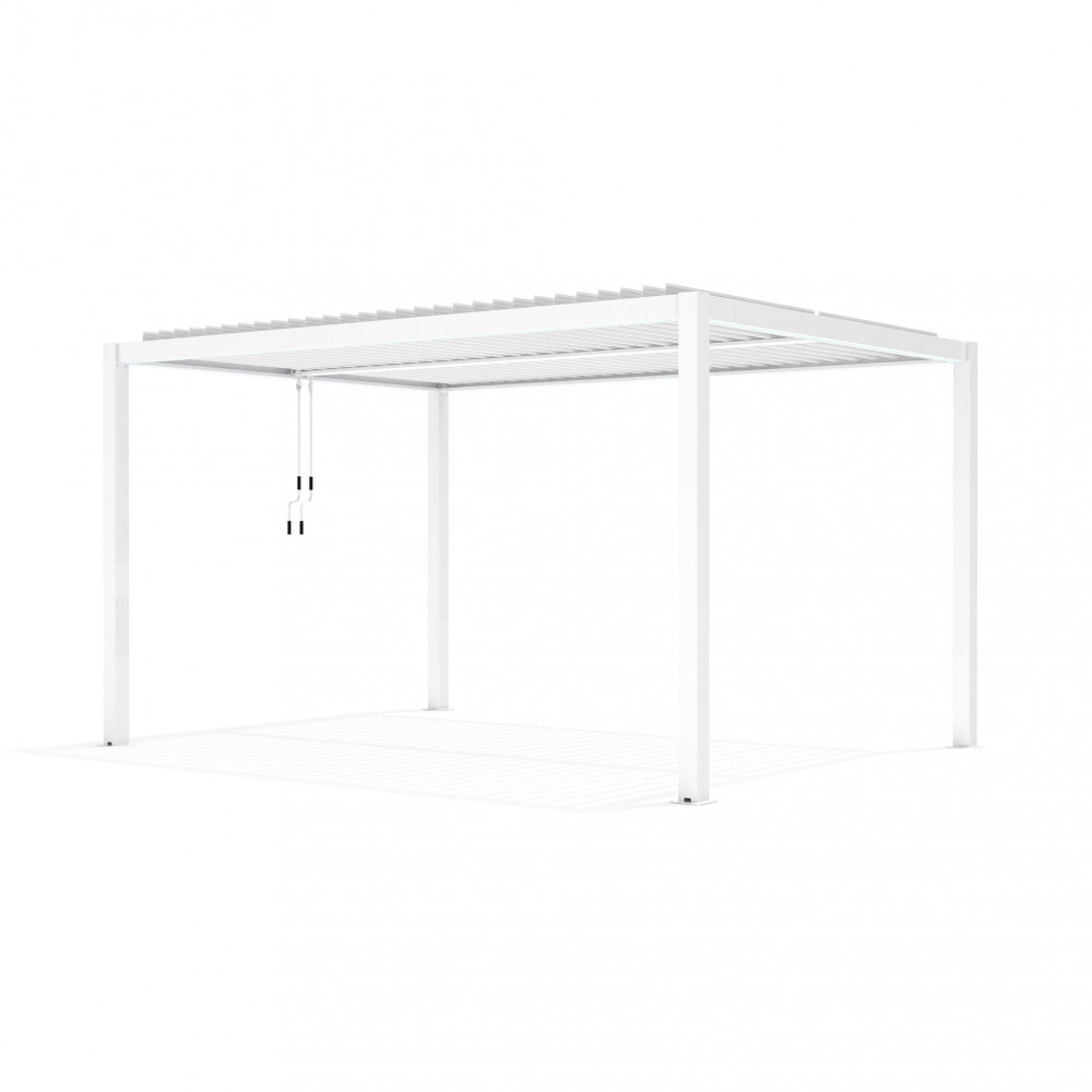 Struttura in alluminio bianco o grigio scuro copertura a lamelle frangisole orientabili a movimentazione manuale resistente a tutte le intemperie Dimensioni: m 3 x 4 x 2,5 h
