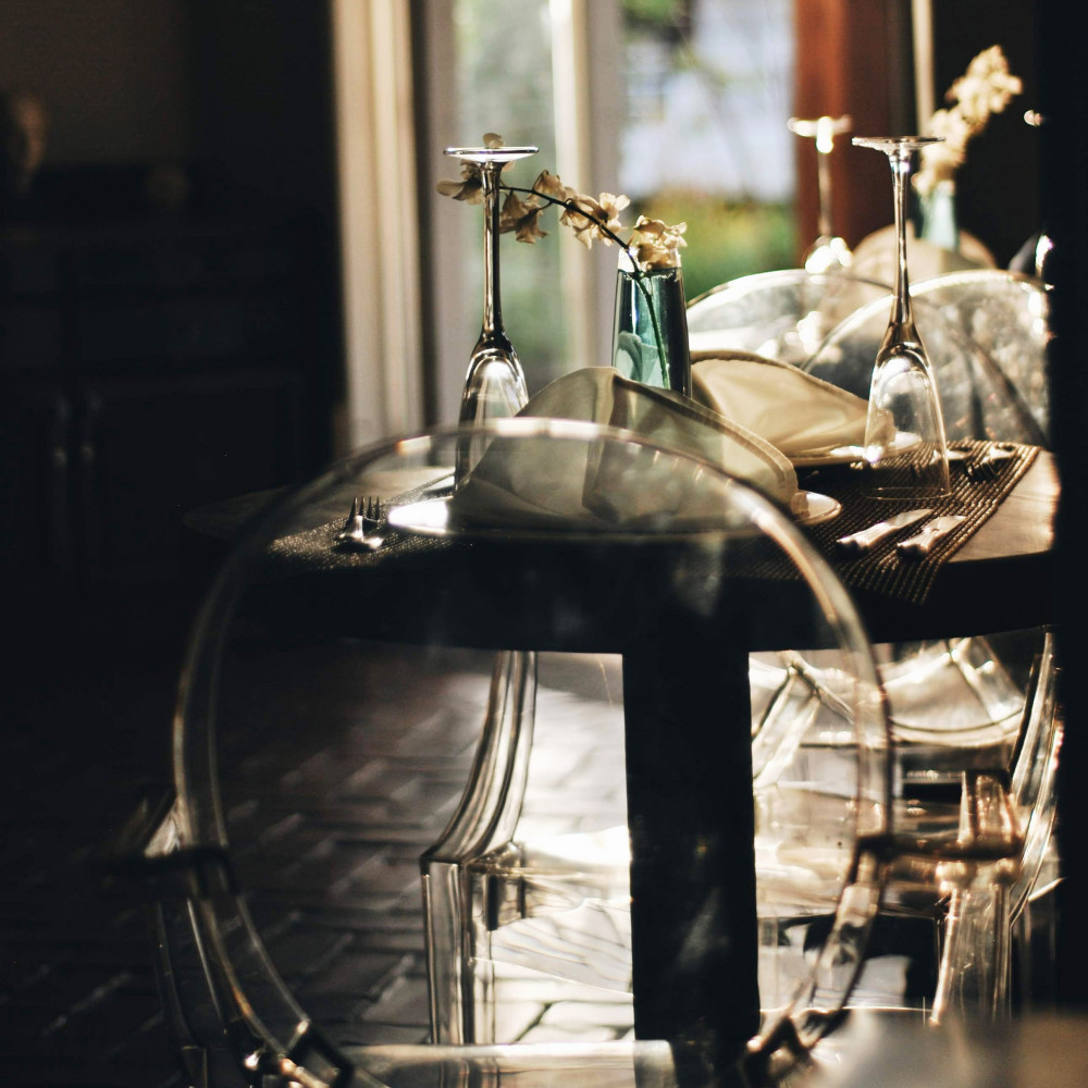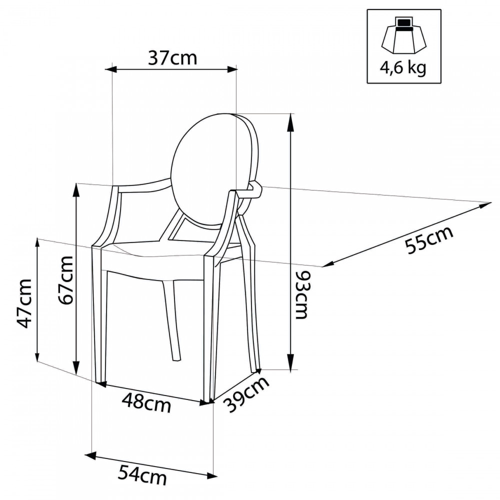 Struttura e seduta in policarbonato TRASPARENTE Dimensioni: cm 55 x 54 x 93 h