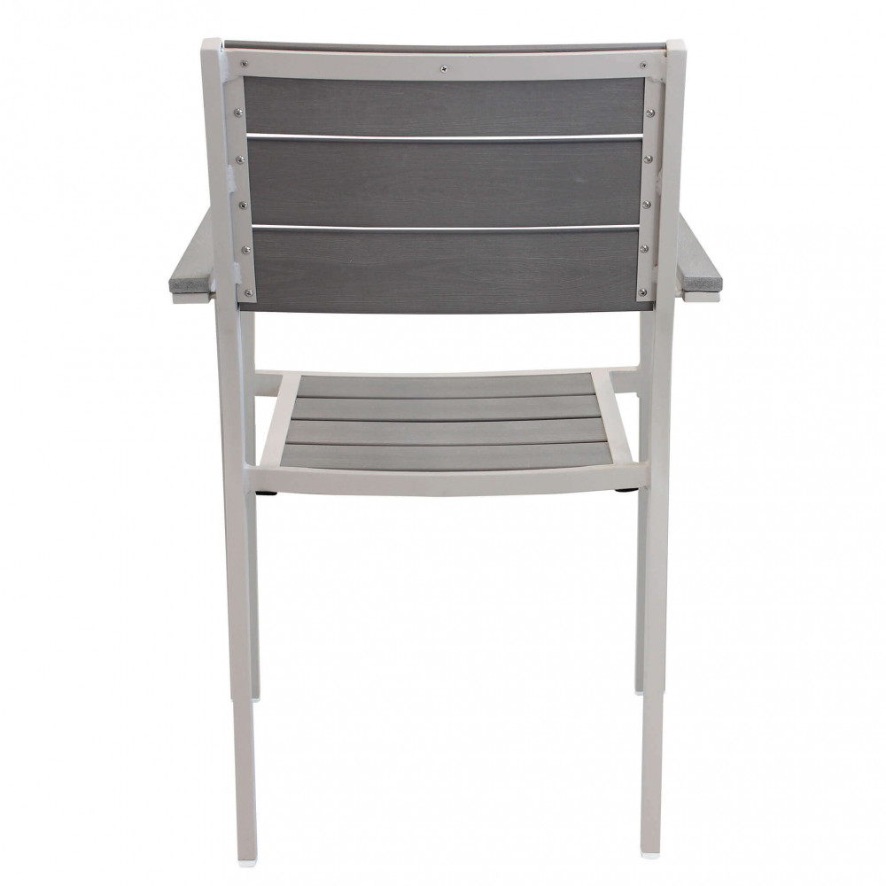 Struttura in alluminio verniciato BIANCO, TORTORA o TAUPE o ANTRACITE schienale e seduta con doghe in POLYWOOD colore grigio Dimensioni: cm 58 x 58 x 89 h