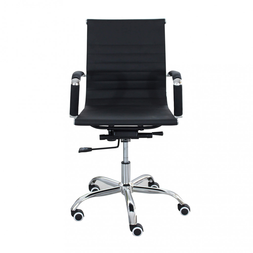 Poltrona da ufficio in PU, braccioli cromati e base cromata con ruote Dimensioni: cm 60 x 60 x 100/110 h