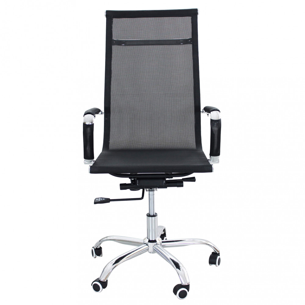 Poltrona da ufficio in rete, braccioli cromati e base cromata con ruote Dimensioni: cm 60 x 60 x 115/125 h