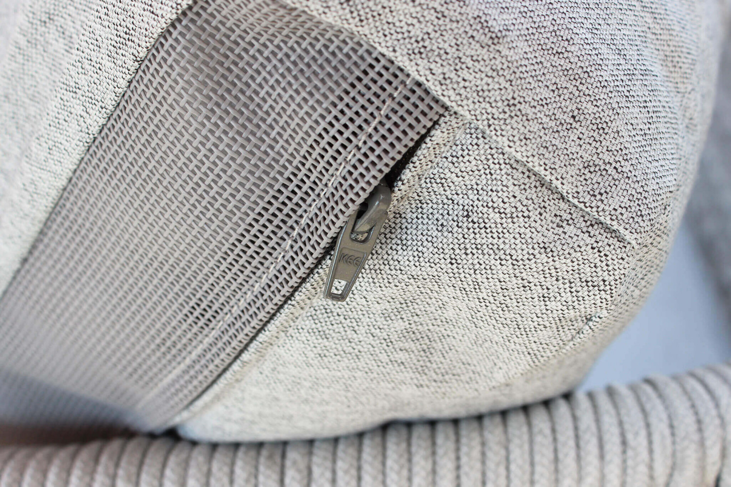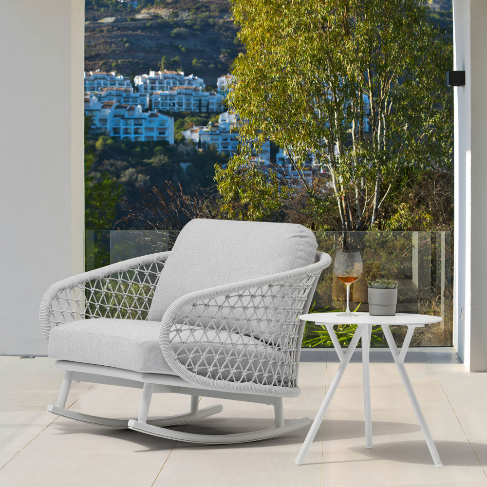 struttura in allumino bianco con corda grigio mélange cuscini con rivestimento tpu idrorepellente grigio chiaro Dimensioni: cm 95 l x 95 p x 70,5 h