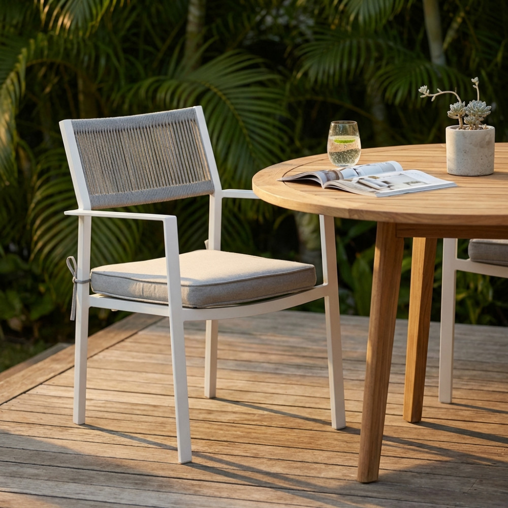 struttura in alluminio bianca, taupe o antracite con cuscini Dimensioni: cm 55,5 l x 62,5 p x 83,5 h
