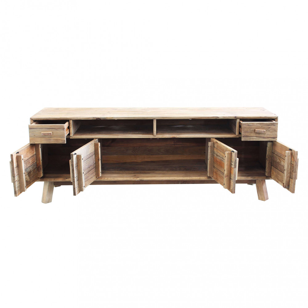 Porta TV con 2 cassetti, 4 ante e 2 ripiani in legno di pino riciclato Dimensioni: cm 180 x 48 x 65 h
