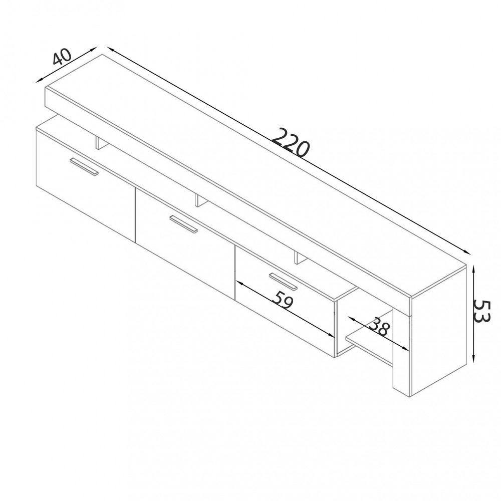 Dimensioni: cm 220 x 40 x 52 h